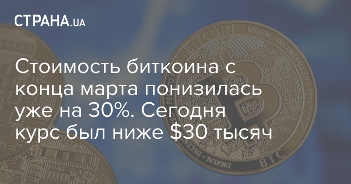 Стоимость самой известной криптовалюты снижается с конца марта, когда ее цена составляла 48 тысяч долларов.
