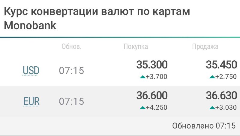 Также сегодня поднял курс и "Монобанк": покупка - до 35,30 грн, а продажа - до 35,45 грн.