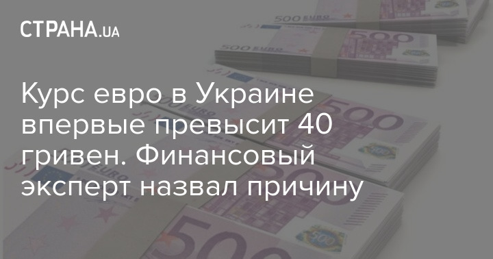 Национальный банк Украины (НБУ) установил на пятницу, 3 февраля, курс евро впервые выше 40 гривен. А именно - 40,17 гривен за евро.
