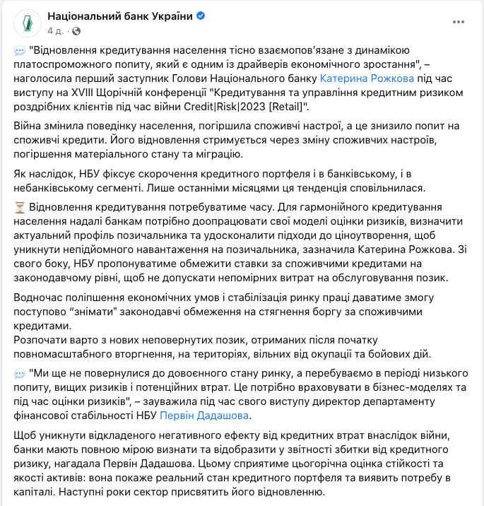 Об этом говорится в официальном сообщении регулятора со ссылкой на первого заместителя НБУ Катерину Рожкову.