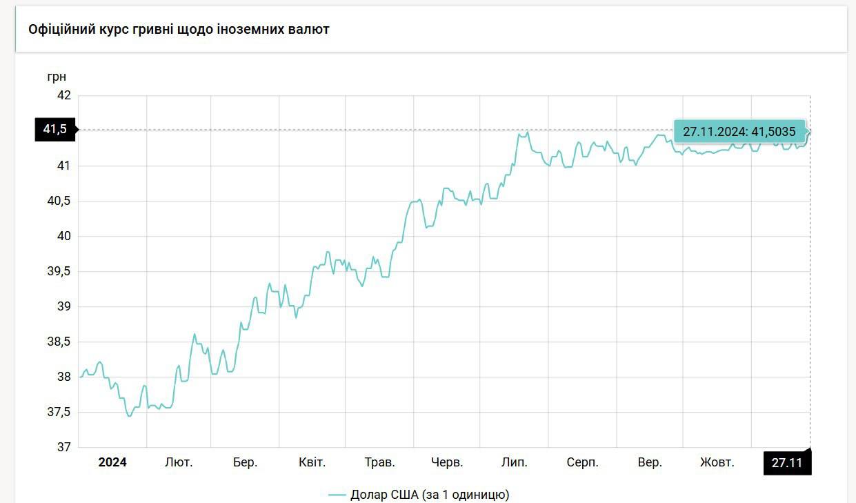 Сегодня Нацбанк поднял свой официальный курс гривны к доллару на новый максимум — 41,5035 грн/$. Предыдущий пик безналичный рынок прошел 22 июля 2024 года, и тогда официальный курс достиг 41,4912 грн/$, после чего больше трех месяцев находился ниже.