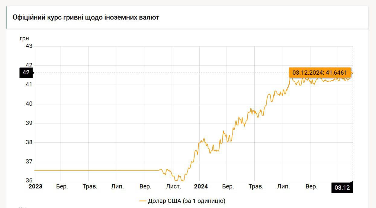 В Украине продолжается валютное подорожание. Сегодня Национальный банк поднял свой официальный курс гривны к доллару на новый исторический максимум: 41,6461 грн/$ после завершения ноября на 41,5847 грн/$.
