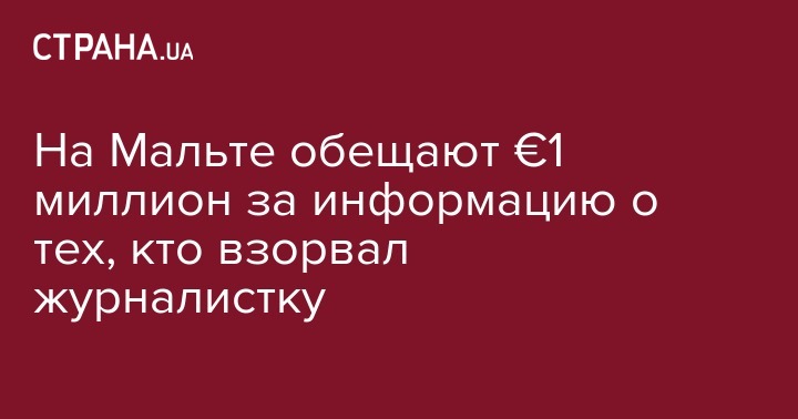 Как сообщала "Страна", 16 октября стало известно, что автомобиль журналистки, писавшей о панамских офшорах, взорвали, когда она находилась внутри. Как отмечалось, девушка также занималась расследованием в отношении премьера Мальты Джозефа Муската и двух его ближайших помощников.