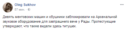 В Киеве на станции метро "Арсенальная" с десяток полицейских машин блокировали звуковое оборудование, которое предназначалось для завтрашнего вече у Верховной Рады.