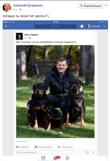 Так, спустя 5 дней после отпущенной в его адрес колкости, Олег Ляшко попытался ответить на оскорбление Юлии Тимошенко, разместив пошловатый пост на своей странице в Facebook.