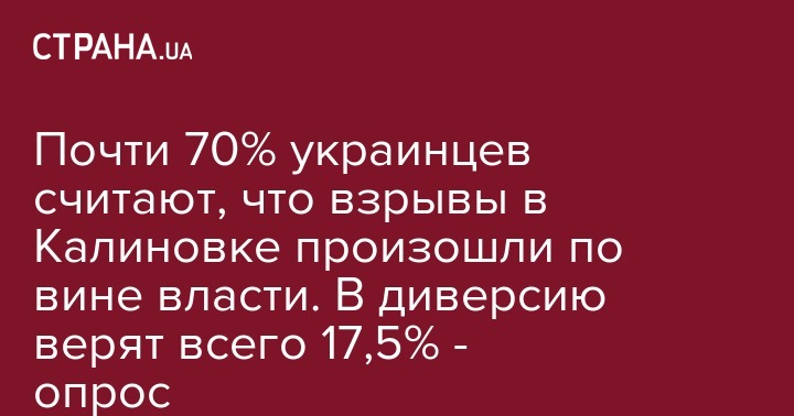 68,3% украинцев считают, что во взрывах на складе боеприпасов в Калиновке виновата власть.