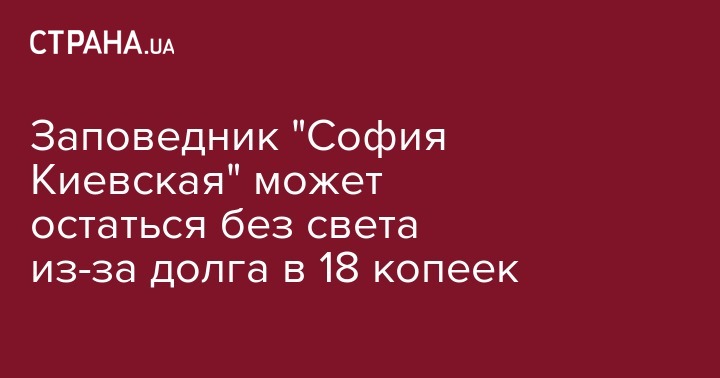 Заповедник "София Киевская" получил предупреждение о скором прекращении электроснабжения из-за долга в 18 копеек. Об этом сообщил заместитель директора по реставрационным и хозяйственным работам заповедника Вадим Кириленко на своей странице в социальной сети Facebook.