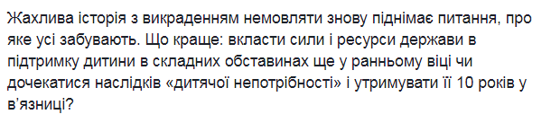 "Последние полтора года Даяна регулярно просила у знакомых крупные суммы денег (от 30 000 до 500 000 гривен) якобы себе на лечение от 4-х стадии рака. Девушка создавала закрытые сообщества в соц.сети для сбора средств себе «на лечение». В июле сообщила друзьям, что родила дочь с гидроцифалиею и ей также нужны деньги на лечение. Но в этой истории она постоянно путалась - рассказывала различную информацию о диагнозе, работу, семейное положение... Во время последнего разговора с подругой (сентябрь 2017) она сообщила, что взяла в долг 15 000 гривен на лечение дочери и постоянно находится с ней в реанимации. Но друзья сомневались в существовании этого ребенка. Их версия - похищение ребенка связано с потребностью в деньгах", - написал на Facebook-странице Уполномоченный Президента Украины по правам ребенка Николай Кулеба.
