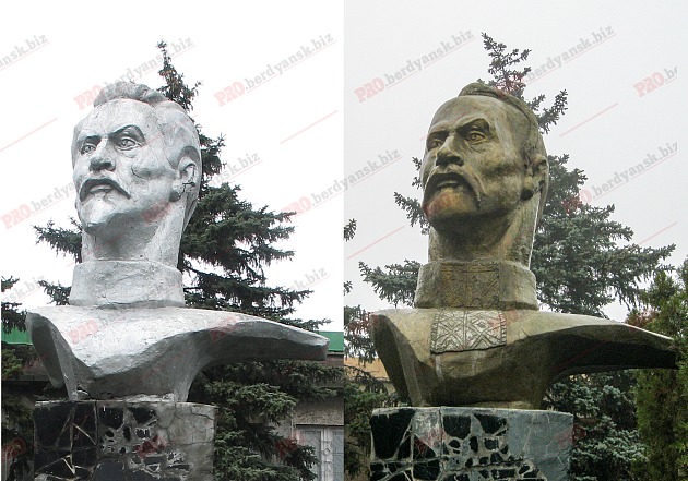 В Бердянске бюст советскому общественному деятелю Феликсу Эдмундовичу Дзержинскому был переделан в монумент одному из лидером казаков и соратнику Богдана Хмельницкого - Максиму Кривоносу.