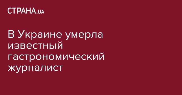 Умерла первый в Украине гастрономический журналист Ирина Алцибеева.Об этом сообщает NewsOne.