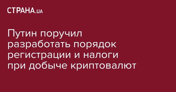 Правительству и Банку России президент РФ Владимир Путин поручил разработать порядок налогообложения и регистрации компаний, занимающихся майнингом криптовалют. Об этом сообщается на сайте Кремля.