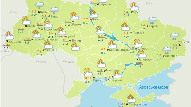 "Температура ночью от 1° тепла до 4° мороза, днем 4-9° тепла, на юге страны и Закарпатье ночью 1-6° тепла, днем 8-13°", - говорится в сообщении.