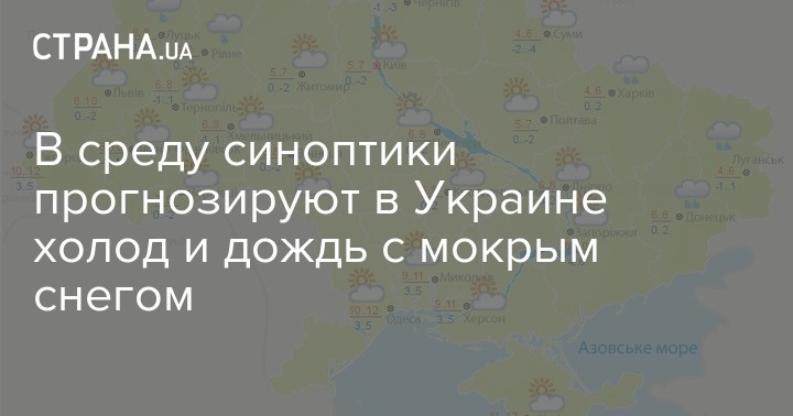В среду синоптики прогнозируют в Украине холод и дождь с мокрым снегом