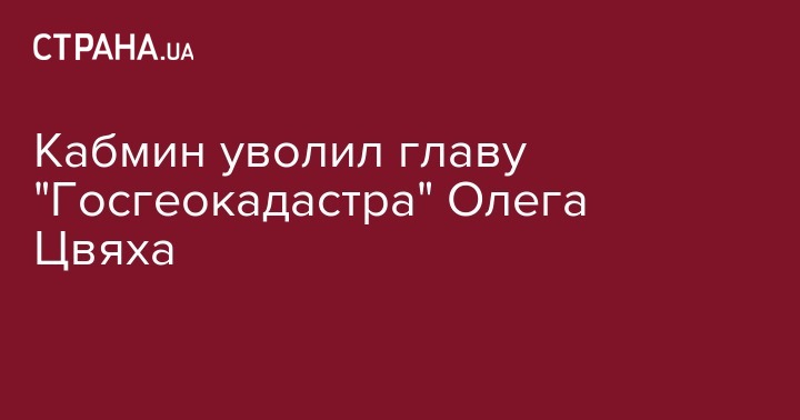 Кабинет министров Украины принял решение об увольнении с должности исполняющего обязанности председателя Госгеокадастра Олега Цвяха. Об этом сообщил вице-премьер-министр Павел Розенко журналистам после заседания правительства 25 октября, передает "Интерфакс-Украина".