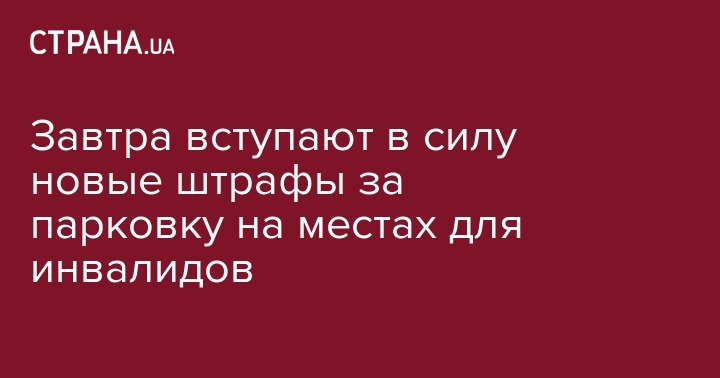 Закон, увеличивающий штраф за парковку автотранспорта на местах, предназначенных для инвалидов, в 3,7 раза с 465 до 1 700 гривен, вступит в силу 26 октября, передают Украинские новости.
