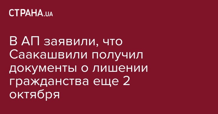 В администрации президента Украины опровергают заявление лидера партии "Рух нових сил", экс-губернатора Одесской области Михаила Саакашвили о недавнем получении им документов о лишении гражданства и заявляют, что они были получены политиком 2 октября.