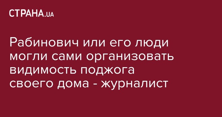 "А главное – над забором есть видеокамера. Видеокамера, которая фиксирует (все происходящее рядом). Кто бы здоровый пошел совершать поджог туда, где существует видеофиксация? И, кстати, как только я подъехал к дому, ко мне сразу вышел охранник. То есть при наличии охраны и видеофиксации у них должны быть зафиксированы люди (поджигатели). Опубликуйте это, пожалуйста, и докажите это. Я не удивлюсь, что если это сам Рабинович и поджигал. Конечно, не сам он, а кто-то из его людей создавал видимость поджога", - утверждает журналист.