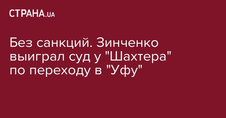 В декабре прошлого года палата по разрешению споров ФИФА рассмотрела иск "Шахтера" к Зинченко и обязала его выплатить клубу порядка 7 тыс. евро за односторонний разрыв контракта в 2014 году, когда он перешел в "Уфу" из-за военных действий на Донбассе.