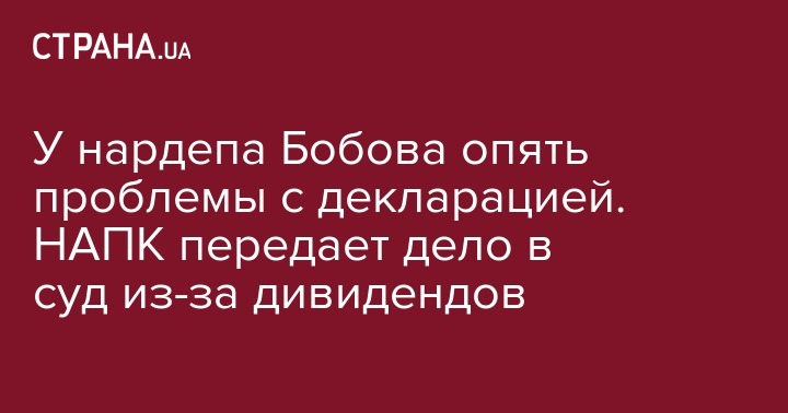 Теперь же Национальное агенство по предотвращению коррупции установило, что Бобов не задекларировал дивиденды на 2 млн 100 тыс. грн. Об этом сообщает пресс-служба НАПК.