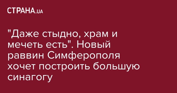 Новый главный раввин аннексированного Симферополя Йехезкель Лазар заявил, что считает действующая еврейская синагога в городе слишком маленькая, поэтому они собираются построить большой центр религиозной жизни их общины. Об этом он рассказал в интервью "РИА Новости Крым".