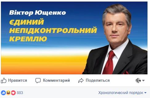 Он сопроводив своим фото на фоне украинского флага и надписью: "Виктор Ющенко. Единственный неподконтрольный Кремлю".