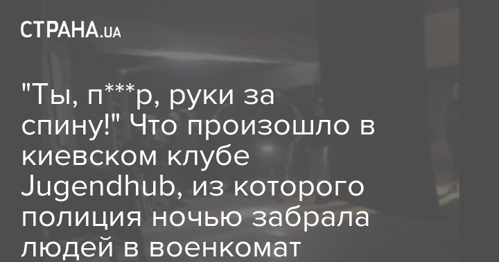 Около двух ночи 28 октября люди в масках с надписями "полиция" и "криминалист" напали на посетителей киевского ночного клуба Jugendhub. Правоохранители всех посетителей клали на пол и ставили к стене. Очень часто они задавали вопросы об употреблении наркотиков. Затем часть посетителей увезли в военкомат.