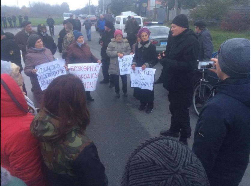 Вчера вечером в Яготине также собрались протестующие и местные жители. Они блокировали проезд к логистическому центру Roshen. С собой они принесли плакаты: "Торгаш или президент", "Безнаказанность порождает коррупцию", "Выполняй обещания или уходи".