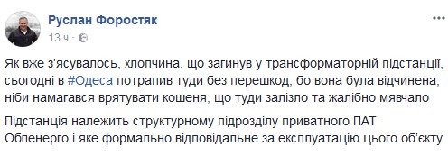 В Одессе детдомовец погиб, спасая котенка из трансформаторной будки