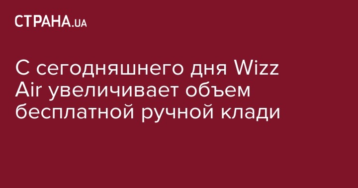 На рейсах авиакомпании Wizz Air с 29 октября увеличили объем ручной клади, которую можно пронести на борт бесплатно. Об этом сообщается пресс-служба авиакомпании на своей странице в Facebook.
