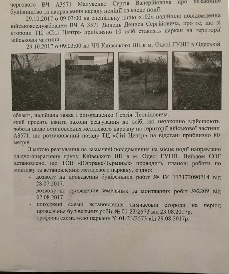 Впрочем, после всех подробностей правоохранители стали на сторону строителей. В комментариях Руслан Форостяк опубликовал часть договора, согласно которому ТОВ "Югтранс-Терминал" проводит плановые работы по монтажу и установлению металлического паркана с учетом всех необходимых разрешительных документов.