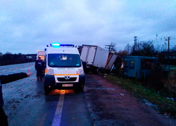 На трассе "Киев-Чоп" вблизи села Ивановка в Житомирской области, сегодня утром 30 октября маршрутка столкнулась с грузовиком. Об этом сообщает пресс-служба местной полиции.