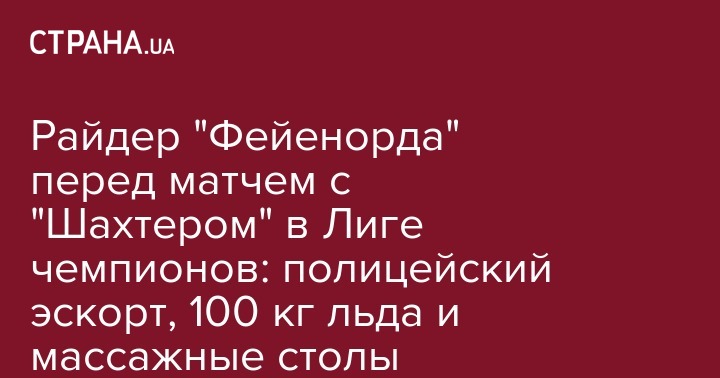 Райдер "Фейенорда" перед матчем с "Шахтером" в Лиге чемпионов: полицейский эскорт, 100 кг льда и массажные столы