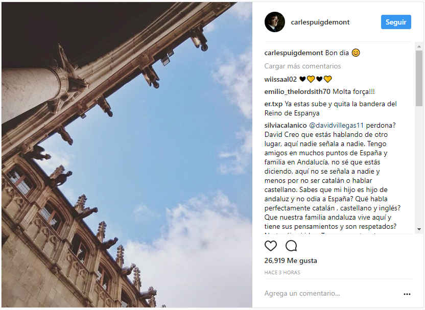 Подписчики отстраненного Мадридом президента Каталонии Карлеса Пучдемона в социальной сети Instagram пытаются разгадать смысл его новой фотографии. Если в ней вообще есть скрытый смысл.