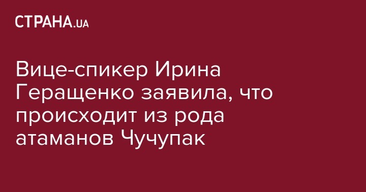 Первый вице-спикер Верховной Рады Ирина Геращенко поделилась в социальной сети Facebook, что ее двоюродная сестра по отцу по материнской линии происходит из рода Чучупак.