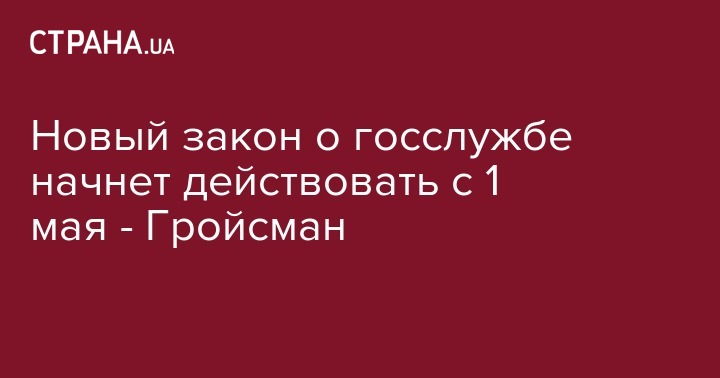 Ранее Владимир Гройсман заявил, что Кабинет министров Украины готов ко вступлению в силу нового закона о государственной службе с 1 мая.