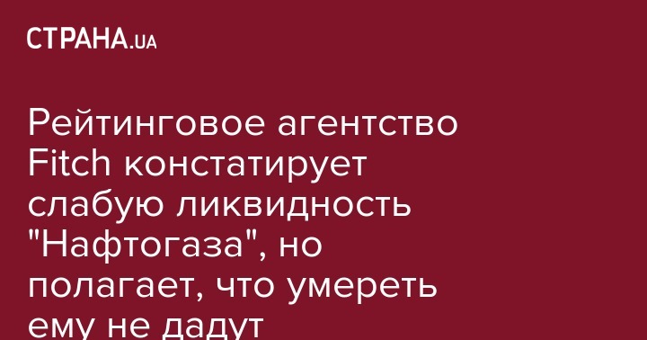 Рейтинговое агентство Fitch констатирует слабую ликвидность "Нафтогаза", но полагает, что умереть ему не дадут
