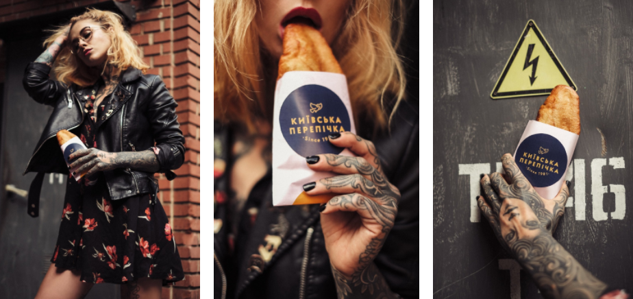 На фото киевская перепичка действительно обрела новый смысл. Ее теперь рекламируют не обнаженные женщины в муке с сосисками, а глянцевые модели с татуировками на руках, а также парни в кожаных куртках.
