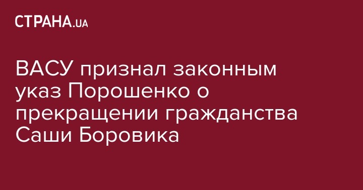 В Высшем административном суде Украины (ВАСУ) признали законным указ президента Украины Петра Порошенко о прекращении украинского гражданства в отношении экс-исполняющего обязанности заместителя председателя Одесской областной государственной администрации (ОГА) Саши Боровика.