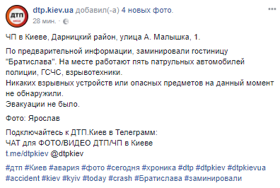 В Киеве по телефону заминировали гостиницу "Братислава" на Левом берегу