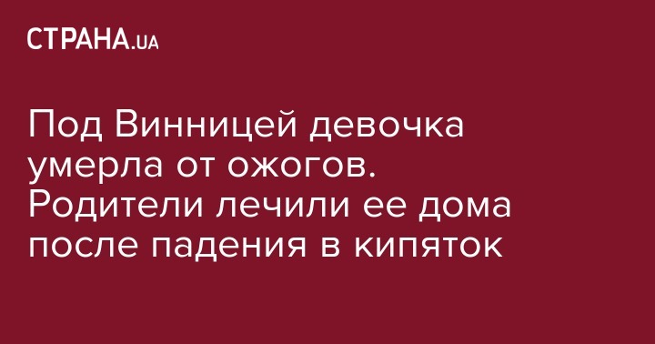 В с. Марьяновка Винницкой области от ожогов 70% тела умерла 2-летняя девочка, родители которой не везли ее два дня в больницу и лечили самостоятельно. Об этом сообщает пресс-служба местной полиции.