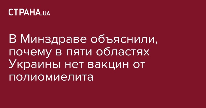 Министерство здравоохранения Украины сообщает, что в пяти областях Украины закончилась вакцина от полиомиелита. Об этом сообщает пресс-служба Минздрава.