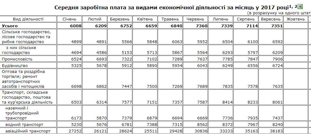 Средняя заработная плата в июне составила 7 360 гривен, 7339 гривен в июле, 7114 гривен в августе и 7351 гривен в сентябре. То есть, даже меньше, чем в июне.