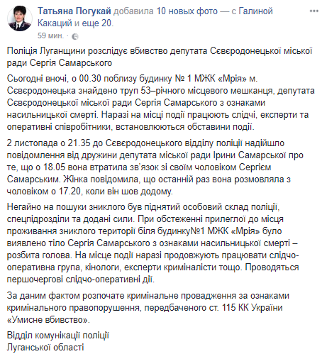 Напомним, что ночью 3 ноября был убит депутат Северодонецкого горсовета, советник мэра города Сергей Самарский.