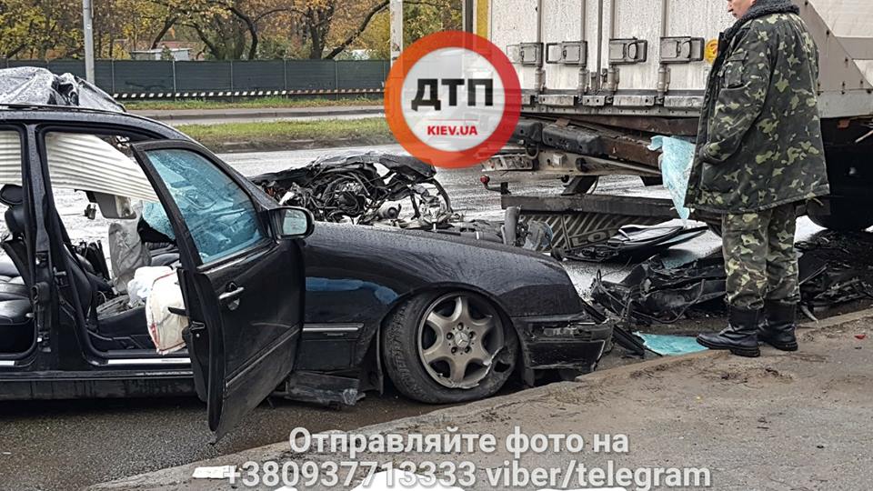 В Киеве погиб водитель Mercedes, который влетел в припаркованный грузовик