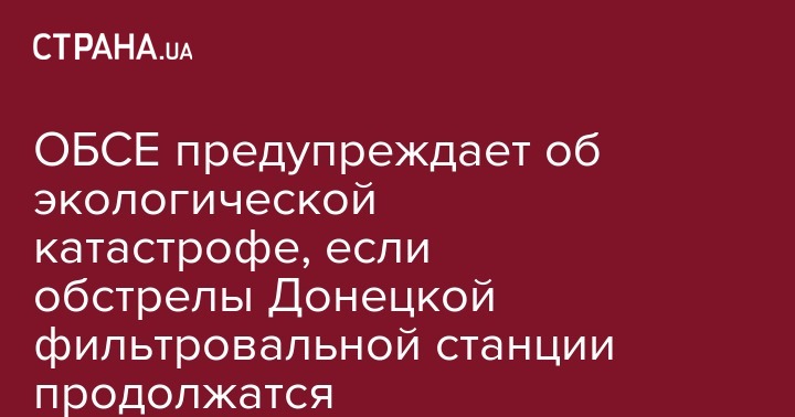 Представители ОБСЕ осудили нарушения перемирия на Донбассе, обстрелы гражданской инфраструктуры, такой как Донецкая фильтровальная станция сегодняшней ночью. Об этом сообщает "Укринформ"