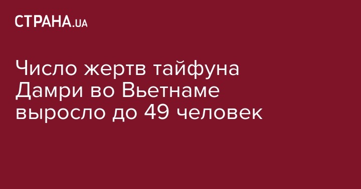 Количество погибших в результате тайфуна Дамри, который обрушился на Вьетнам на этих выходных, увеличилось до 49 человек. Об этом сообщает Reuters.