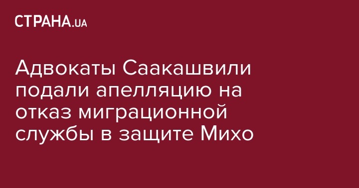 Адвокаты лидера политической партии "Рух нових сил" Михаила Саакашвили подали жалобу в миграционную службу Украины в связи с отказом ведомства предоставить дополнительную защиту. Об этом в Facebook адвокат Павел Богомазов.