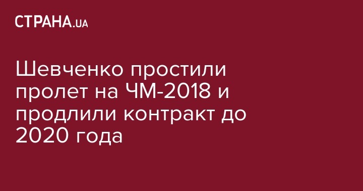 Шевченко простили пролет на ЧМ-2018 и продлили контракт до 2020 года