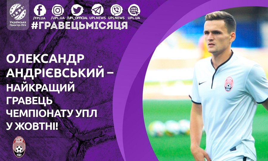 Полузащитник "Зари" Александр Андриевский был признан болельщиками лучшим игроком чемпионата Украины в октябре.