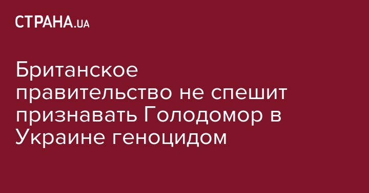 В Великобритании в Палате общин (нижняя палата парламента - Прим.Ред.) призывают признать Голодомор 1932-1933 годов в Украине геноцидом украинского народа, однако британское правительство в этом вопросе пока сохраняет сдержанную позицию. Об этом передает УНИАН.